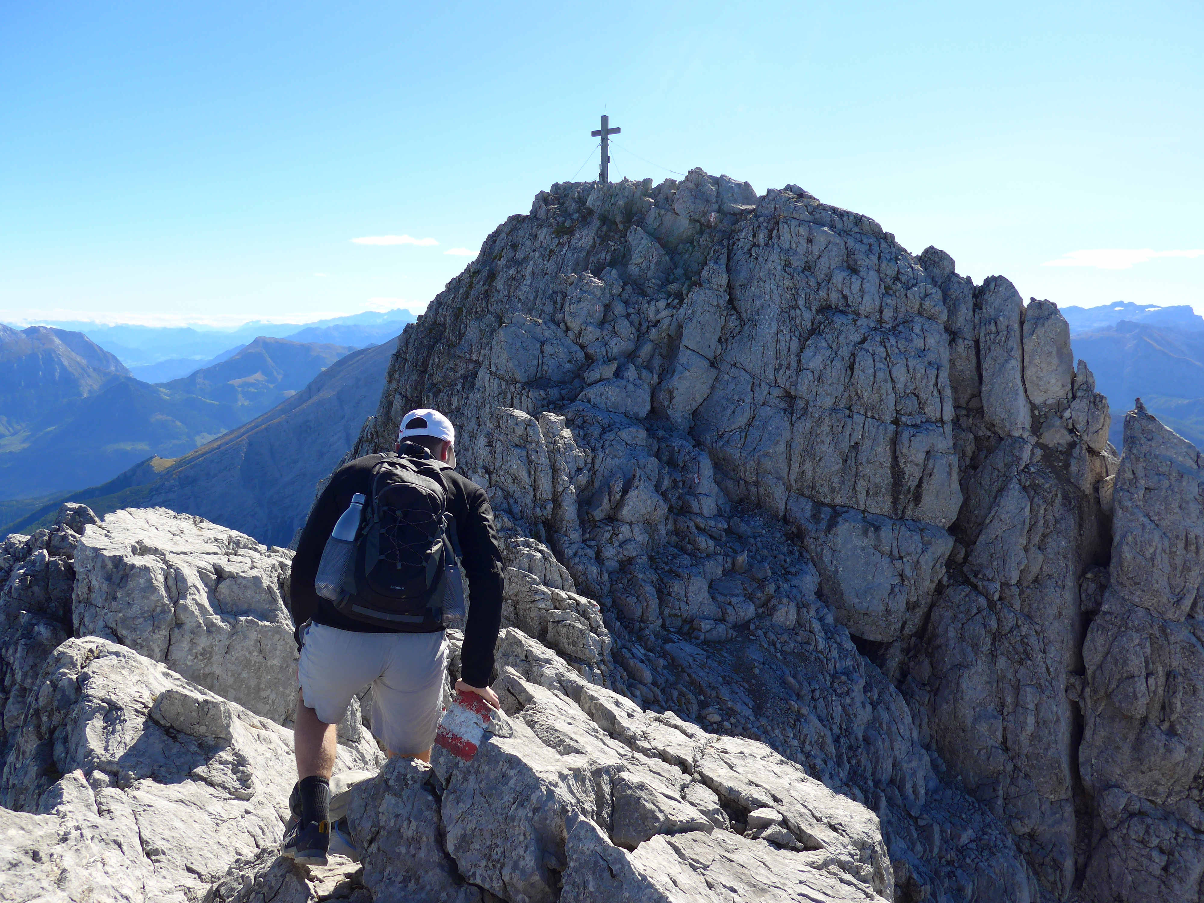 Bild rechts: Der Hohe Göll hat eines der schönsten Gipfelkreuze mit einem Bergkristall in seiner Mitte.